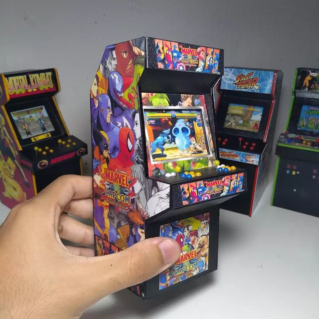 The 1:12 scale Arcade Miniature is a collectible piece inspired by the classic arcade machines that defined the golden age of video games. Designed with a strong sense of nostalgia and artistic detail, this miniature is perfect for dioramas, action figure displays, and as a decorative piece for collectors who appreciate retro gaming culture.